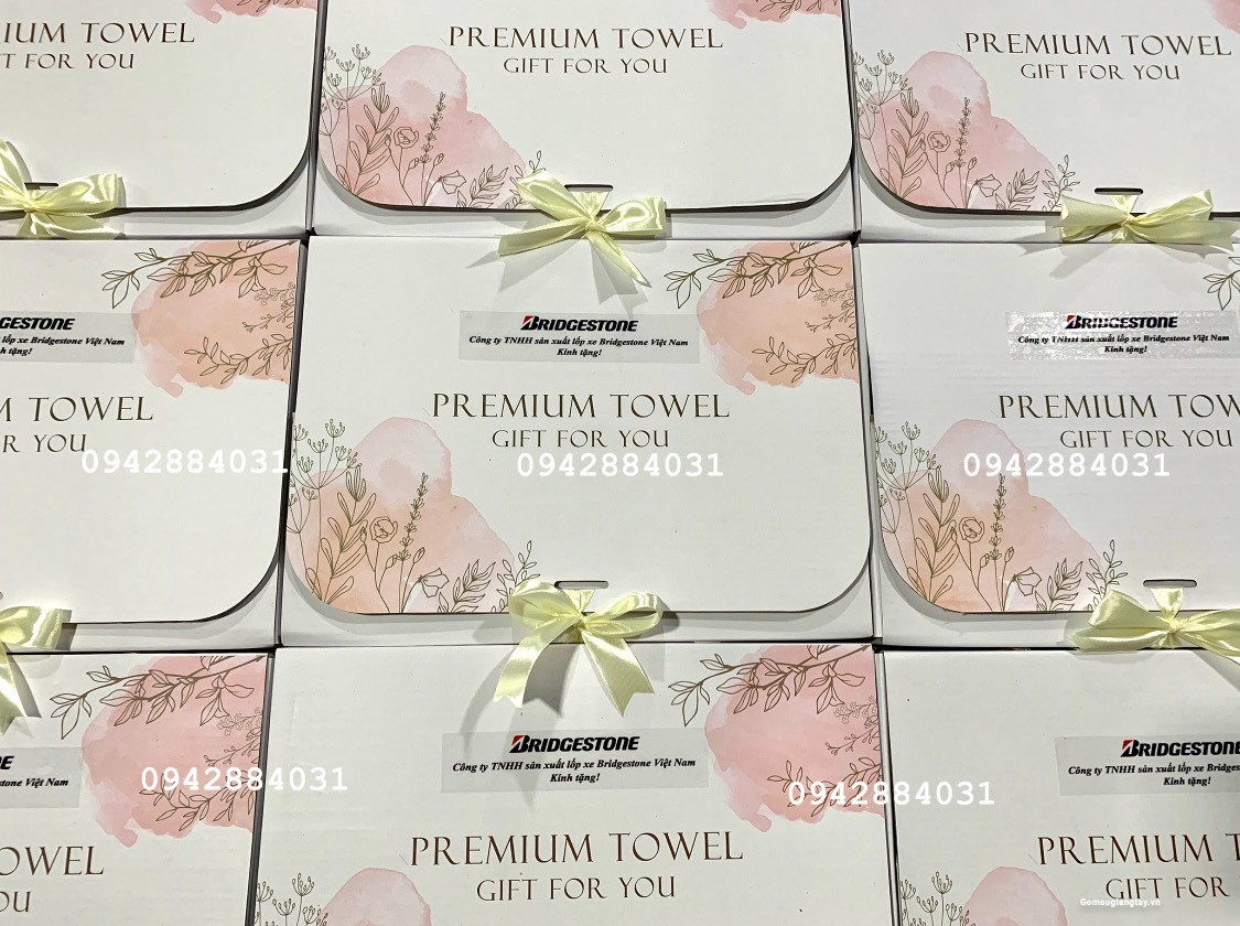 + Bộ khăn được Thêu logo và đóng gói theo yêu cầu, khẳng định dấu ấn thương hiệu.